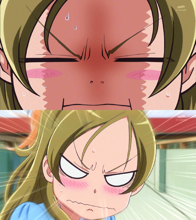 - かんたん作画用のキュアモジューレ。資料としては申し分ないんですが… 例年だとこういうアップのシーンが随分丁寧に描き込まれていたものですが。ウーン